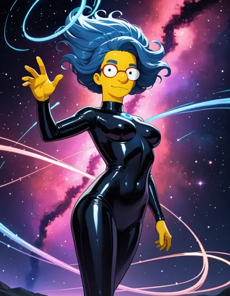 ベースプロンプト: luann_simpsons, 青い髪, 眼鏡, 短髪, 耳飾り,