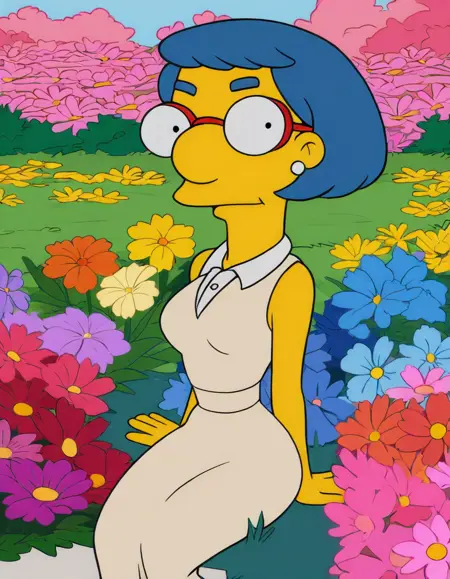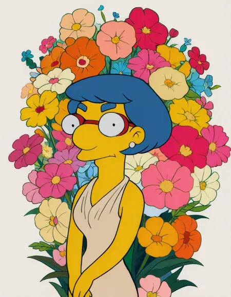 기본 프롬프트: luann_simpsons, 파란 머리, 안경, 단발, 귀걸이,