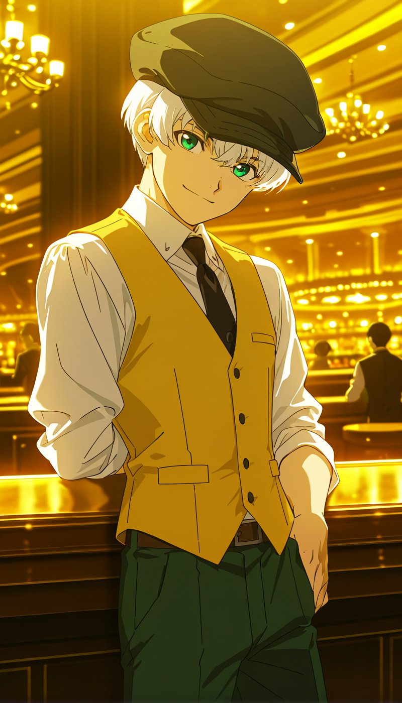 트리거 단어: saionji ukyou, 흰 머리, 녹색 눈, 모자