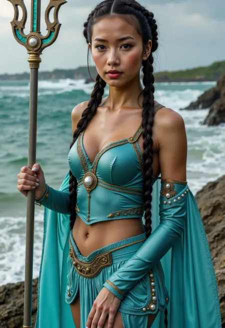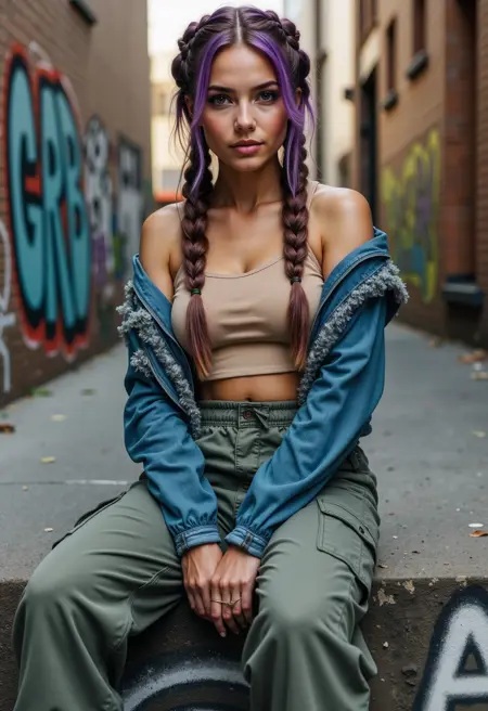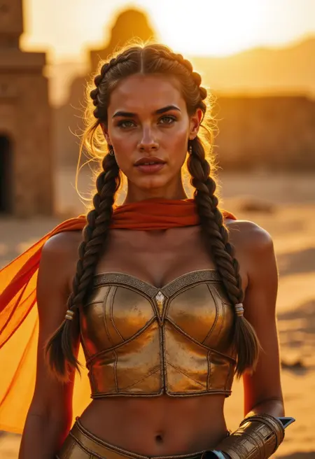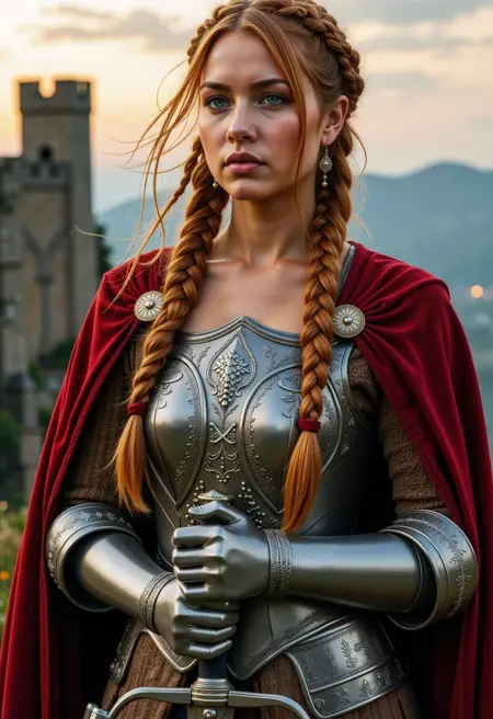 haist003、金髪で、ゆるく編んだ2つのポニーテール。上部には顔を囲むように優雅なクラウン編みが施され、ポニーテールに自然に溶け込んでいる。編み目は太く、少しほどほどの乱れがある。