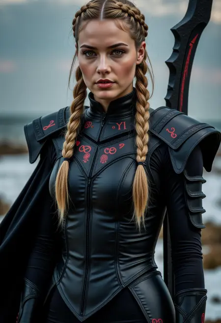 haist003、太いオランダ編みを2本したロングヘア。編み目は丁寧に整えられ、頭頂部から始まり、肩より下まで伸びている。