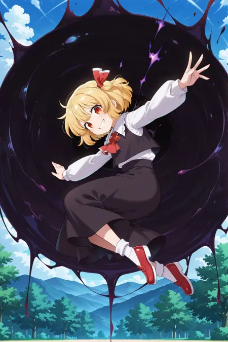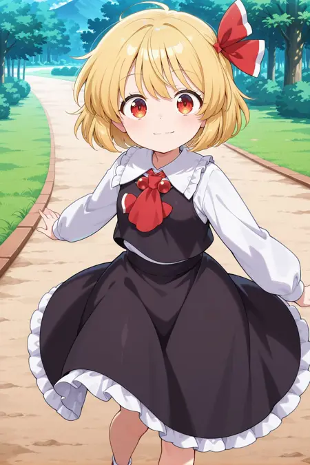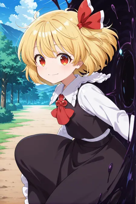 rumia, 1girl, solo, red eyes, blonde hair, short hair,