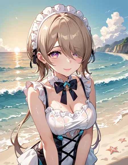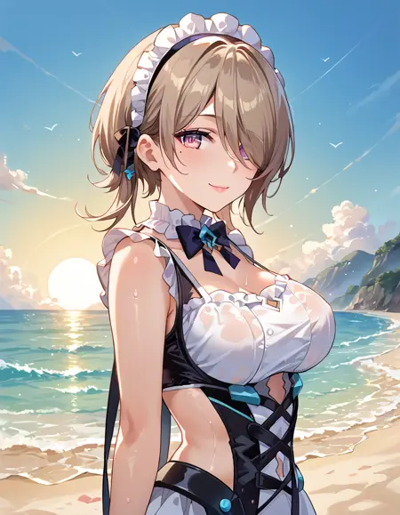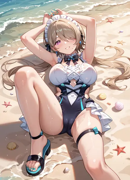 IcySeaSpray, ISS_swimsuit, IS_detached_collar, ISS_bowtie, low twintails,ISS_headdress,sandals,ISS_thigh_strap,