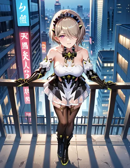SpinaAstera, layered dress, SA_dress, single thighhigh, SA_thighhighs, SA_gloves, SA_hair_ornament, SA_high_heels_boots
