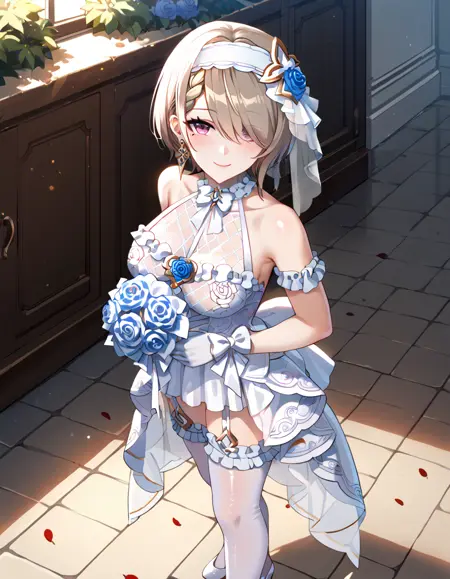 VowOfRoses,VOR_wedding_dress, VOR_thighhighs, VOR_garter_straps, VOR_elbow_gloves, VOR_hair ornament, VOR_earrings, VOR_high_heels, VOR_bridal_veil
