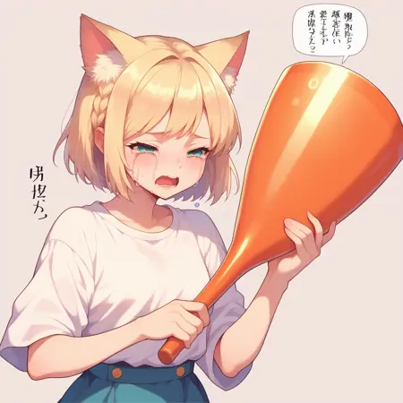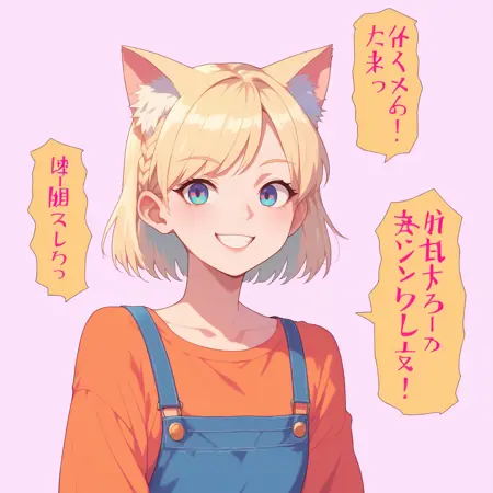 是个长着可爱猫耳的女孩花子。是名为百草丸的AI创作者的作品。