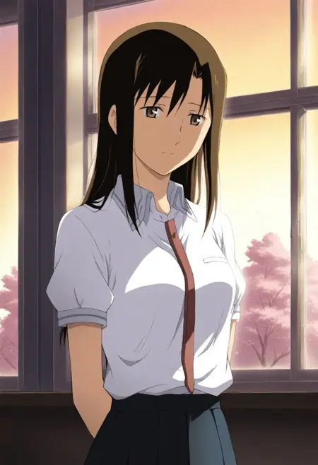 Akari Shinohara,black-brown hair,brown eyes,slim