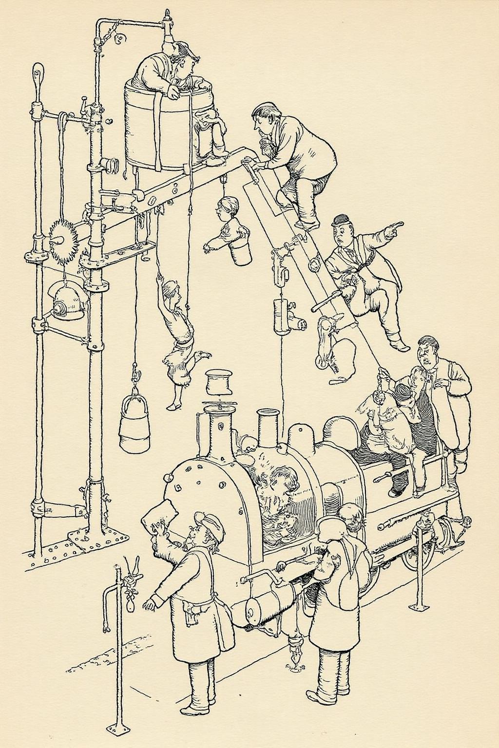 British Rube Goldberg: W. Heath Robinson Illustration Style