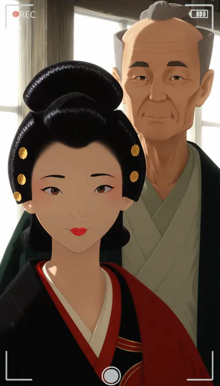 公主明美,单独,1女孩,和服,黑发,发环,日本女性发型,发饰,