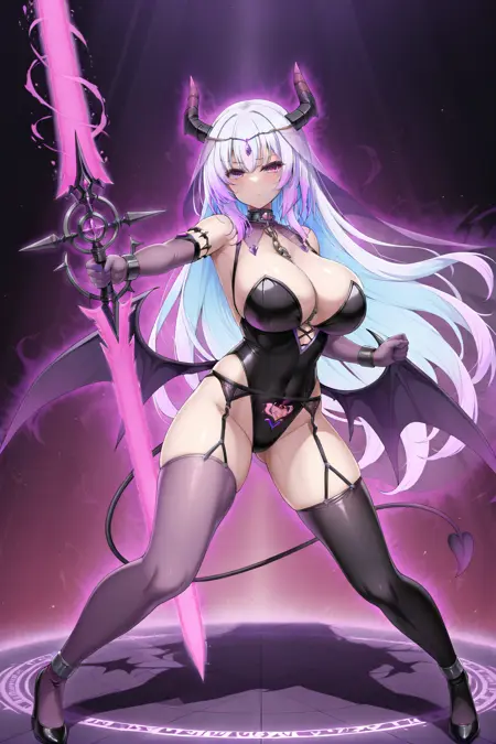 demon girl, demon horns, demon wings, purple wings, low wings, demon tail,