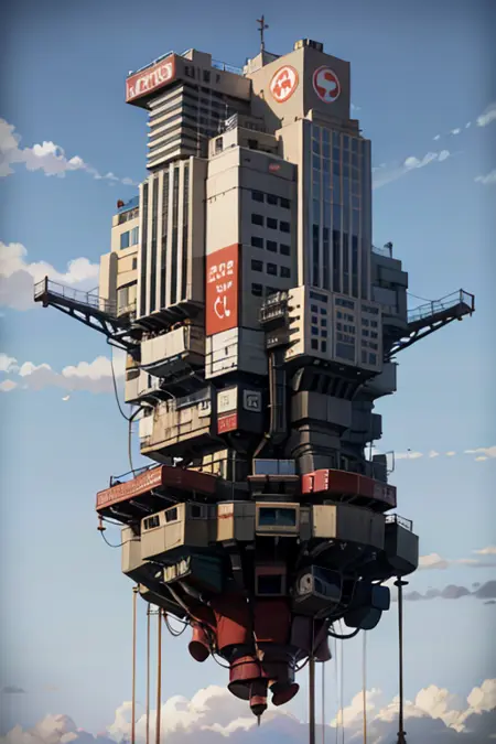 masterpiece, best quality, (Blue sky, Cloudy,machine),,Suspended city,<lora:BIAO_floating :1>
