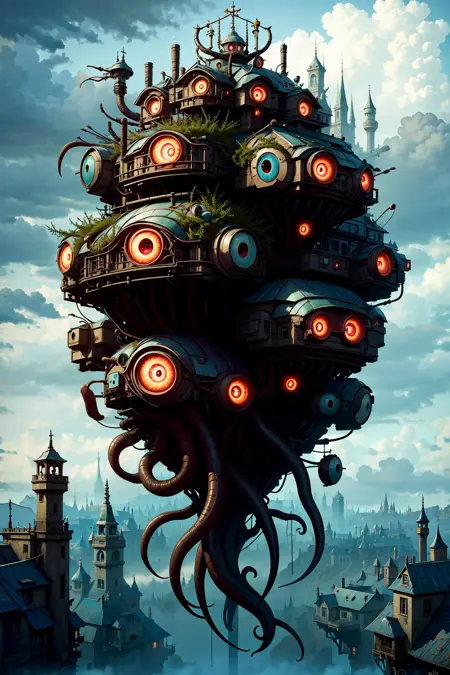 V1 버전은 더 특별하고 다양한 부유 도시 효과를 생성하지만, 생성률이 낮습니다. 가중치는 1.01.5, 이미지는 1020장을, 프롬프트 단어는 최소한으로 설정하는 것이 좋습니다.