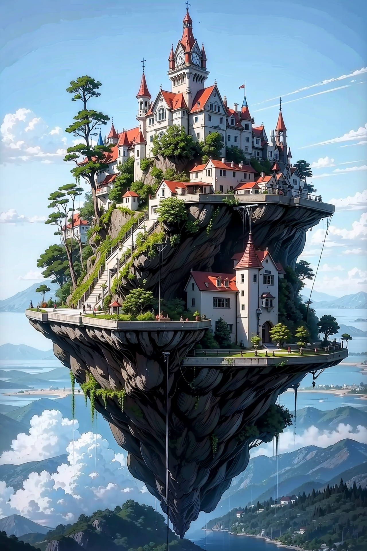 V1版本生成悬浮城市效果会更加特别和多样化,但是出图率较低,建议权重1.0到1.5,出图10到20张,以及较少的提示词。