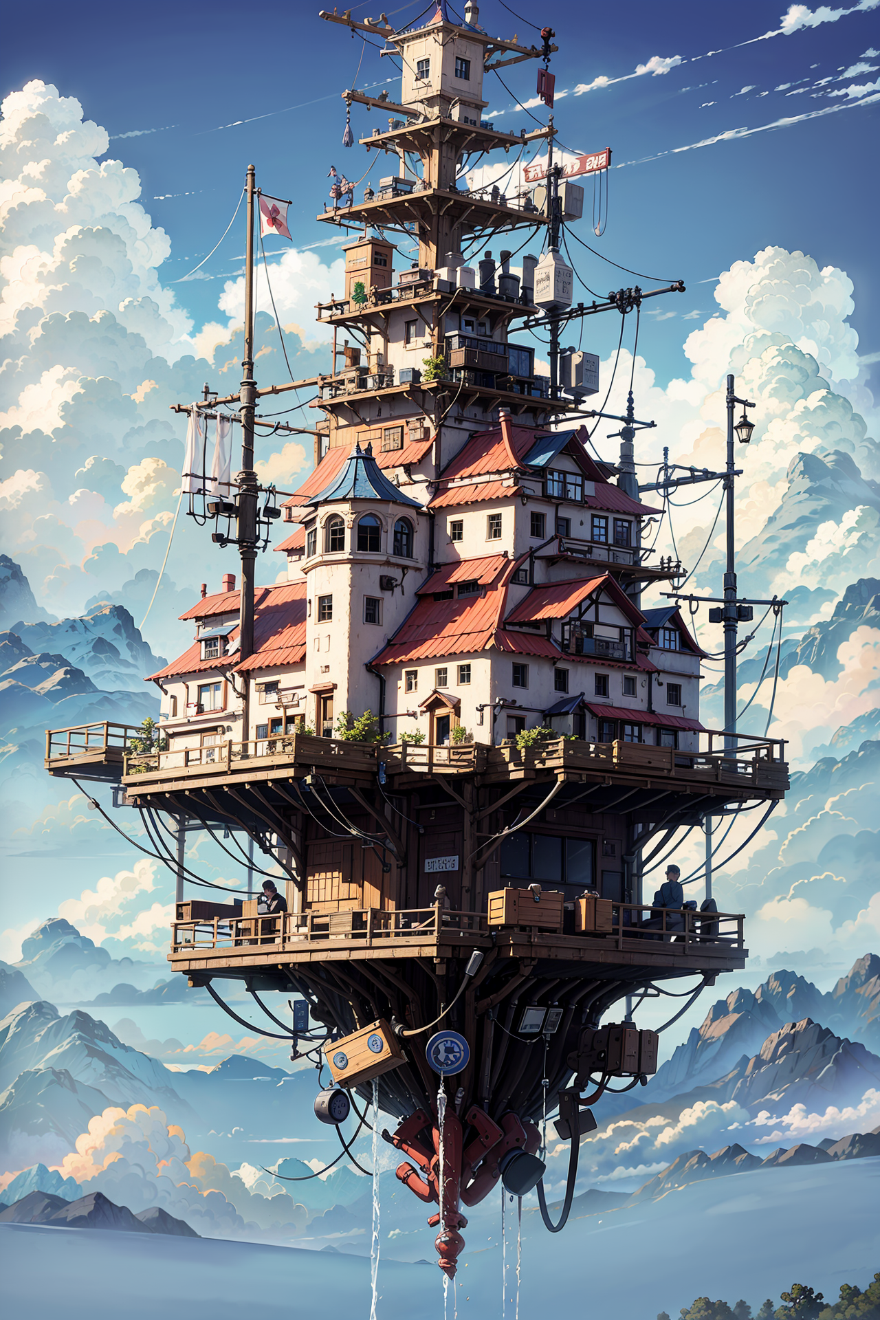 masterpiece, best quality, (Blue sky, Cloudy,machine),,Suspended city,<lora:BIAO_floating :1>