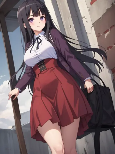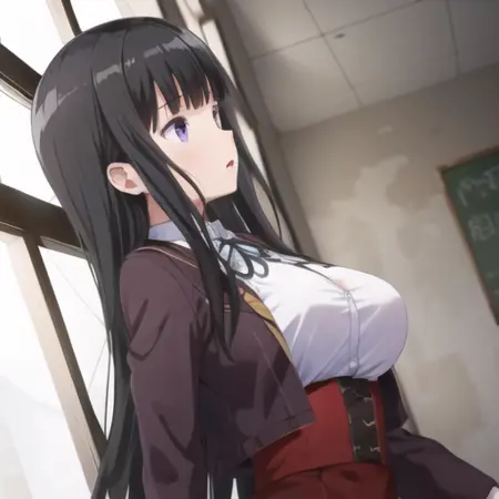 This is the heroine Kotoko Miura in the Japanese anime "JK to Orc Heidan Aku Buta Oni ni Ryougyaku Sareta Seijo Gakuen"
