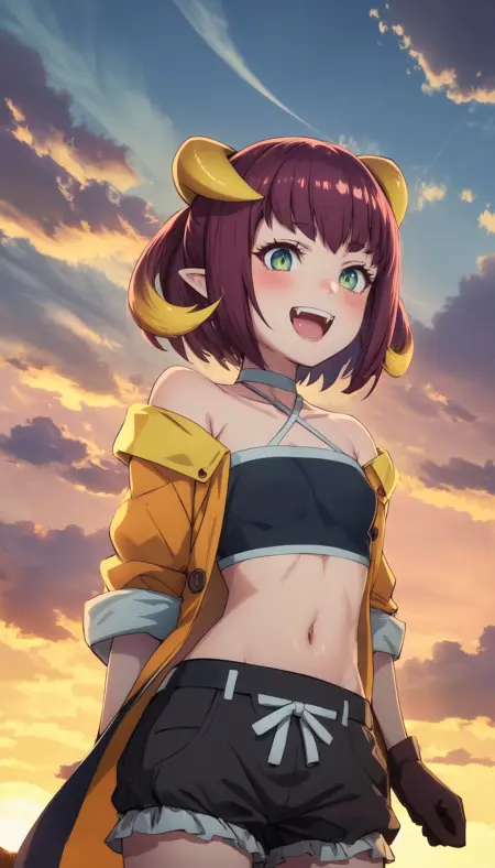 キーワードは「feste」で、かなりうまく機能します。ただし、彼女の髪の毛のため、値を約1.0まで上げる必要があります。その場合、ジャケットなしのカジュアルな服や他の衣装での彼女のポートレートは難しくなる可能性があります。また、彼女が背中に持っている帽子は、ほとんどの画像で正しく表示されず、背景に不自然な円として現れるため、削除しました。