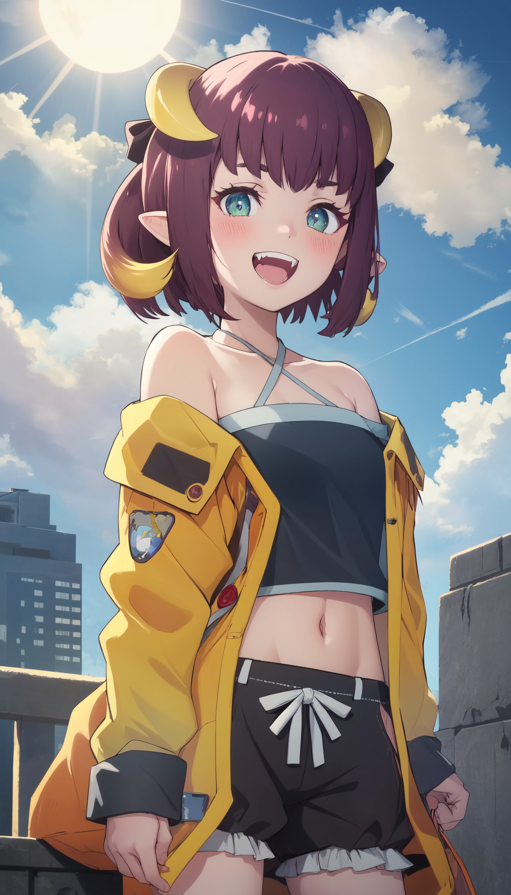 키워드는 'feste'이며, 효과가 매우 좋습니다. 그러나 그녀의 머리카락 때문에 강도를 약 1.0까지 올려야 합니다. 이럴 경우, 그녀를 자켓 없이 캐주얼한 옷차림으로 표현하기 어려울 수 있습니다. 또한 그녀가 등에 메고 있는 모자를 제거했습니다. 대부분의 이미지에서 모자가 제대로 보이지 않았고, 배경에 이상한 원형으로만 나타나기 때문입니다.