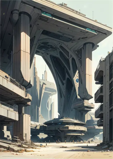 ralph mcquarrie, retro scifi, science fiction ,retro artstyle, 1970s \(style\), superstructure, building,