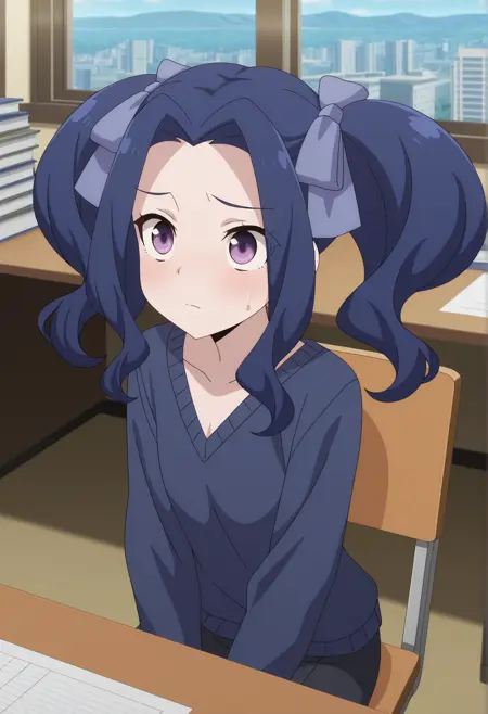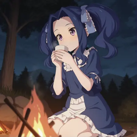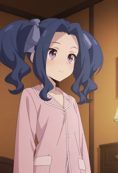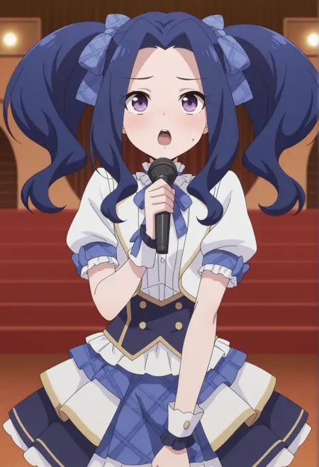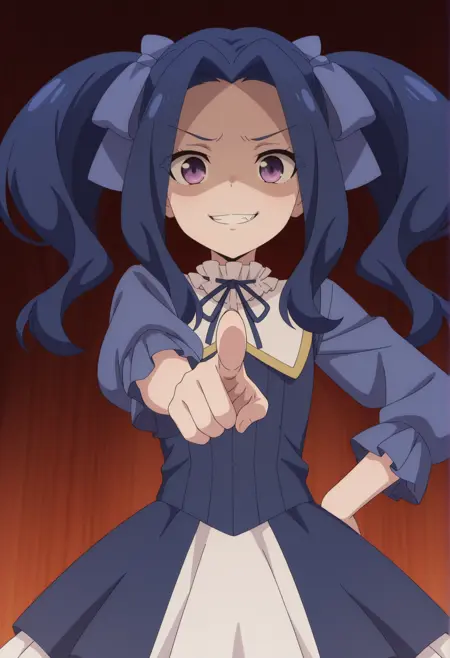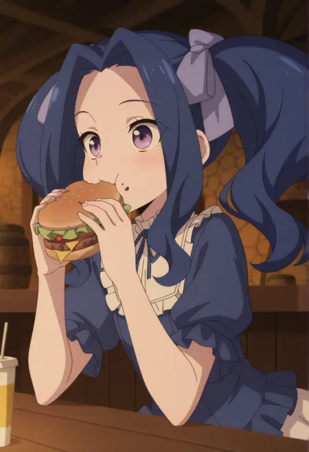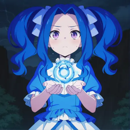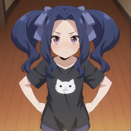 このLoRAは1つのアクティベーションキーワードを想定しており、そのキーワードはキャラクター全体の雰囲気を引き出し、「青髪」「ツインテール」「紫の目」というタグの再現性を安定させる役割を果たします。