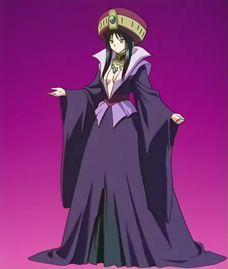 ArdenPurple, medium breasts, huge hat, long robe, jewelry, fortune teller,black shirt,