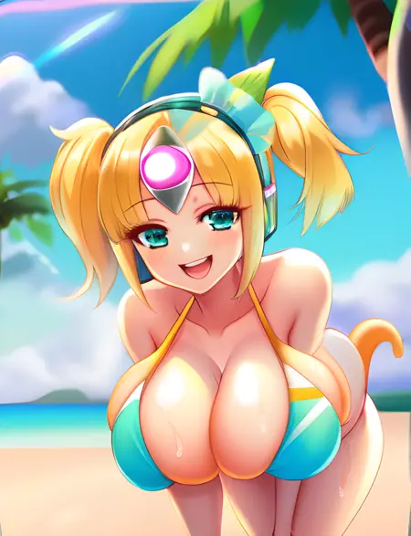 Well apart from that, I made sure to tag all her outfits so she can use a few different clothing items. My suggestion to prompt her are the following: elva, crop top/bikini/fur coat/white shirt, fake animal ears, rabbit ears, forehead jewel, navel, shoulders, striped legwear/thighhighs