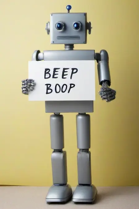 더 일관성을 높이려면 "holding a sign that says"를 추가하세요.