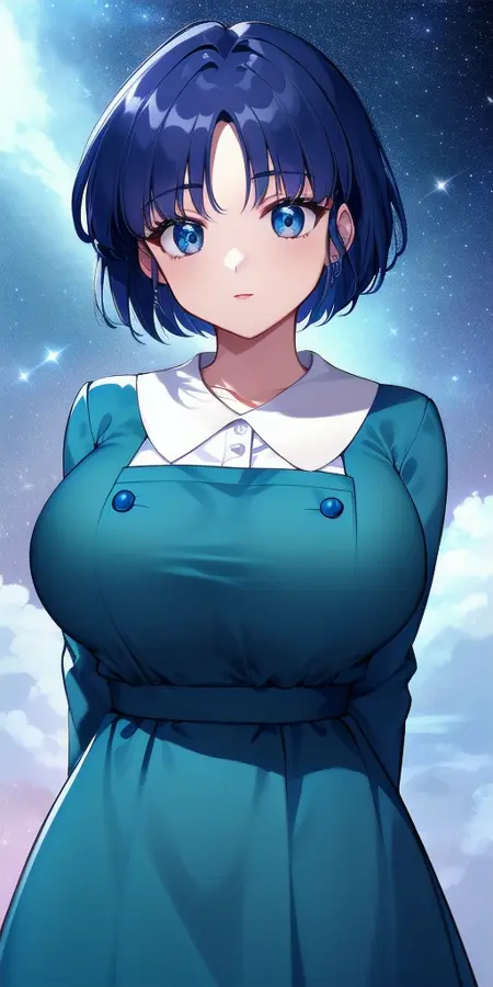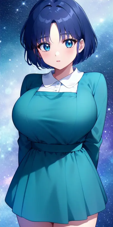 white_collared_shirt_aqua_pinafore_dress_puffy_short_sleeves: Summer furinkan uniform.
