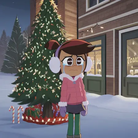 莫莉冬季版:耳罩,粉色外套,手套,连指手套,裙子,绿色丝袜,外套,毛皮镶边,冬装;为增添圣诞氛围:圣诞灯饰,棒棒糖,圣诞节,圣诞树,糖果