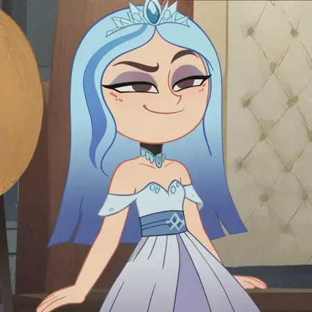 Disney princess: 1girl, long hair, blue hair, multicolored hair, tiara, sash, choker, dress, blue dress
