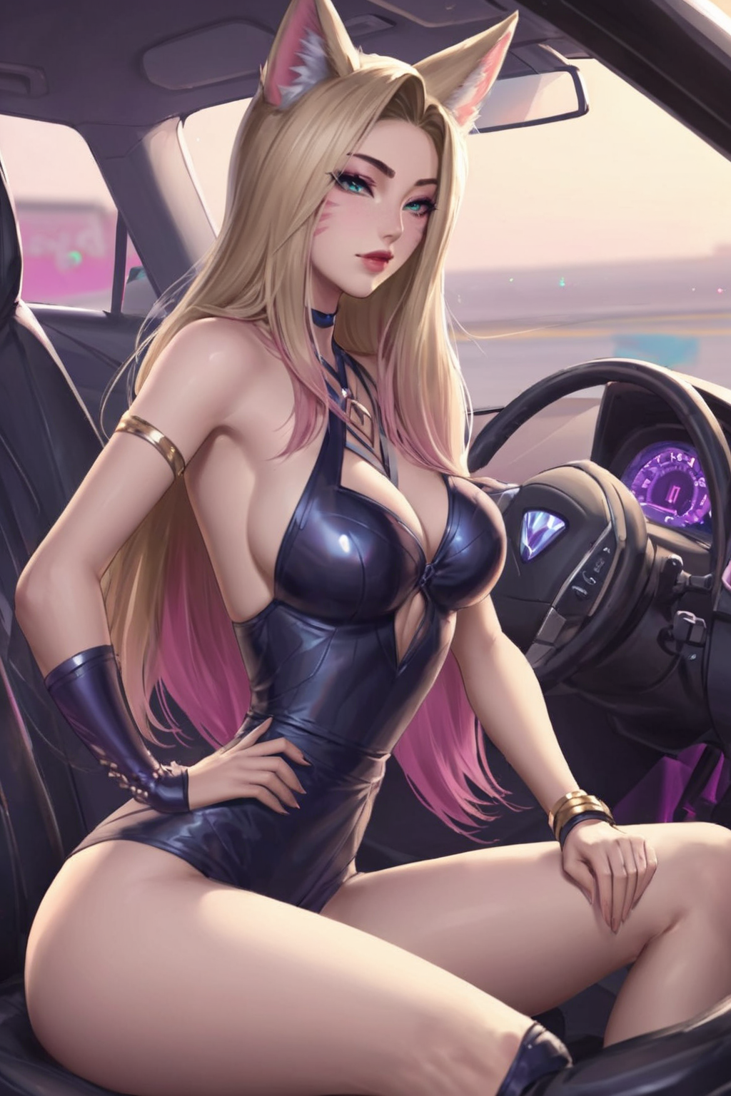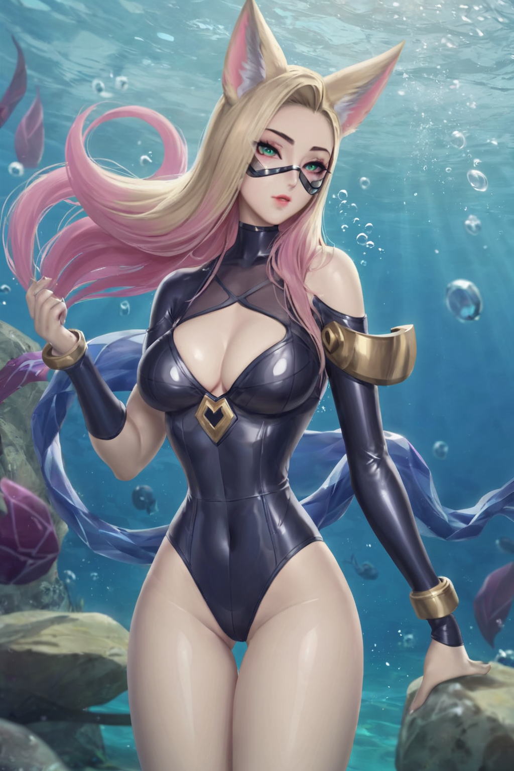 Ahri, 1girl, mystical effects, K/DA, full body, galaxy backgroundlora:Ahri:0.55