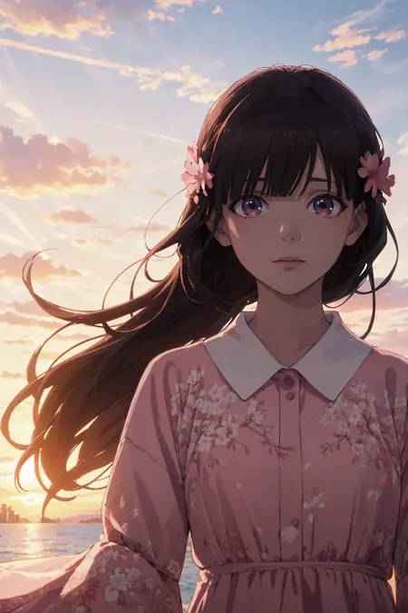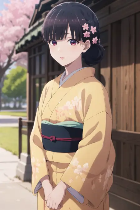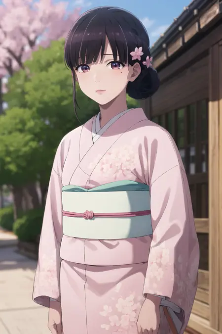 권장 프롬프트: miyo, kimono, obi, hair ornament, mole, mole under eye