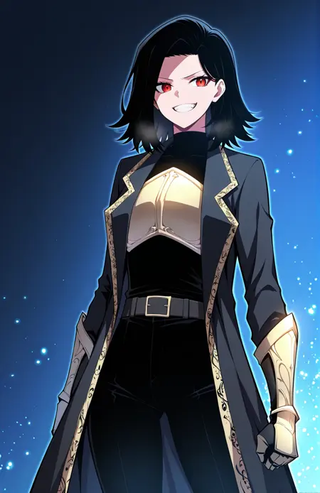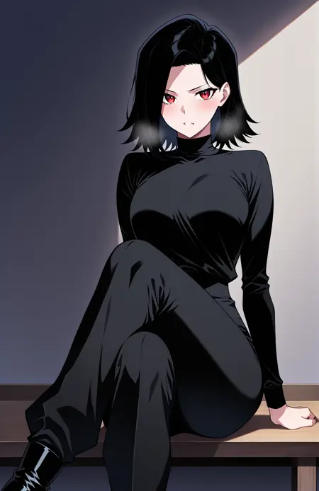 | トレーニングワード | Mary, 1 girl, solo, red eyes, black hair, short hair, straight hair, hair covering one eye, side part, side-swept bangs,コピーしました! Mary_outfit1, black long coat, open-front coat, gold trim, ornate trim, white breastplate, structured bodice, dark undershirt, tight black pants, layered outfit, metallic bracers, black boots, armored glovesコピーしました! Mary_outfit2, tight black outfit, black long-sleeve top, black turtleneck, black pants, high-waisted pants, tight black pants, black ankle boots,コピーしました! |