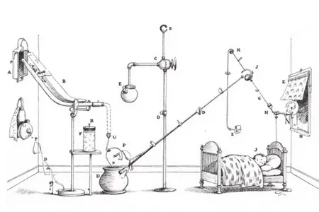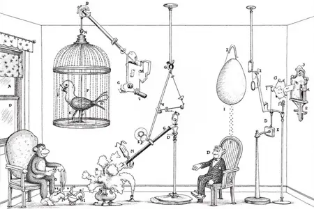 各機械は、てこ、滑車、転がるボール、動物、時には小型の爆発までを用いて、些細な目的を達成する仕組みである。