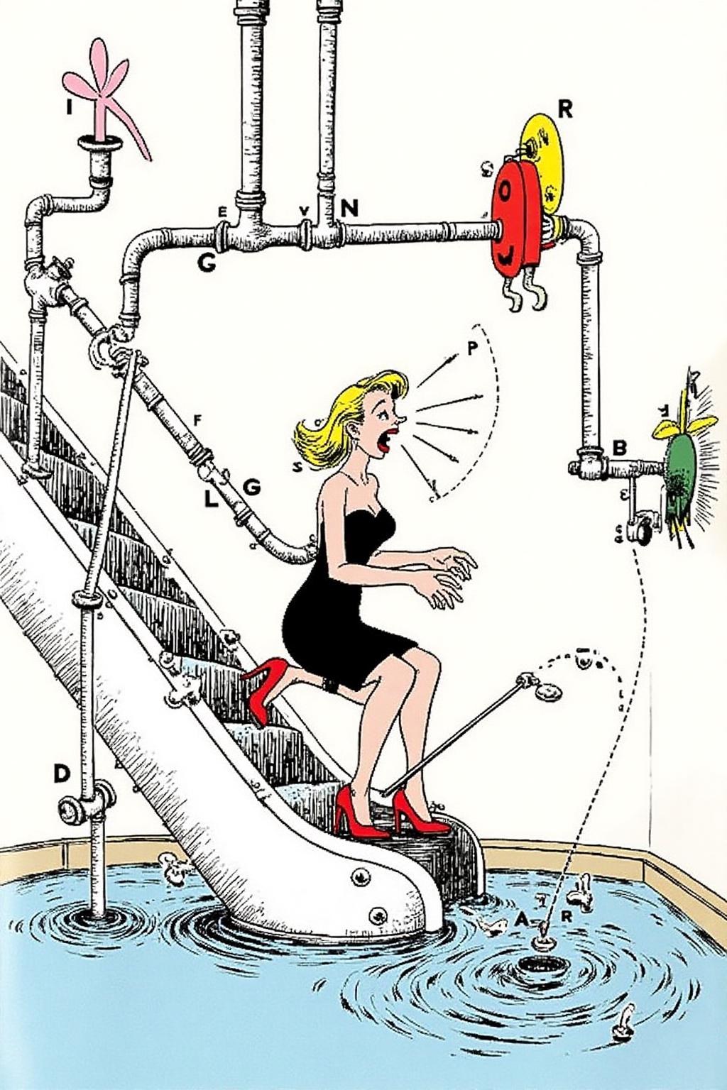 ゴールドバーグ:風刺的で、カートゥーン的。工業化社会や官僚主義を痛烈に皮肉る。