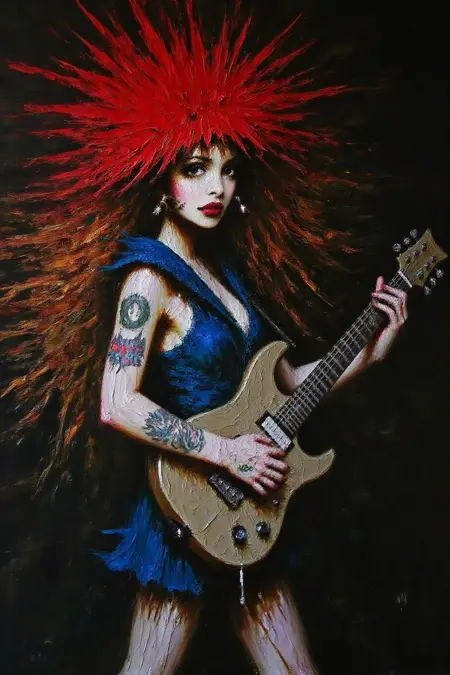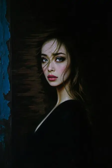 This LoRA produces portraits with visible, heavy brushstrokes in a modern style, with strong contrast. Works best with a dark background.