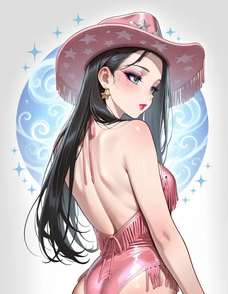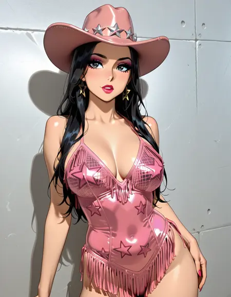 hud_cr_costum, 粉色紧身衣,流苏边饰,星星(符号),粉色牛仔帽,闪亮