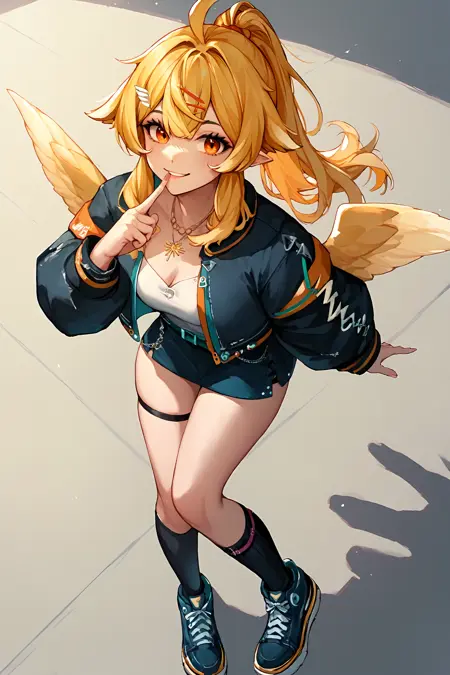 hibiki \(vtuber\), 低翅, 发夹, 开襟外套, 项链, 大腿绑带, 黑色过膝袜, 运动鞋
