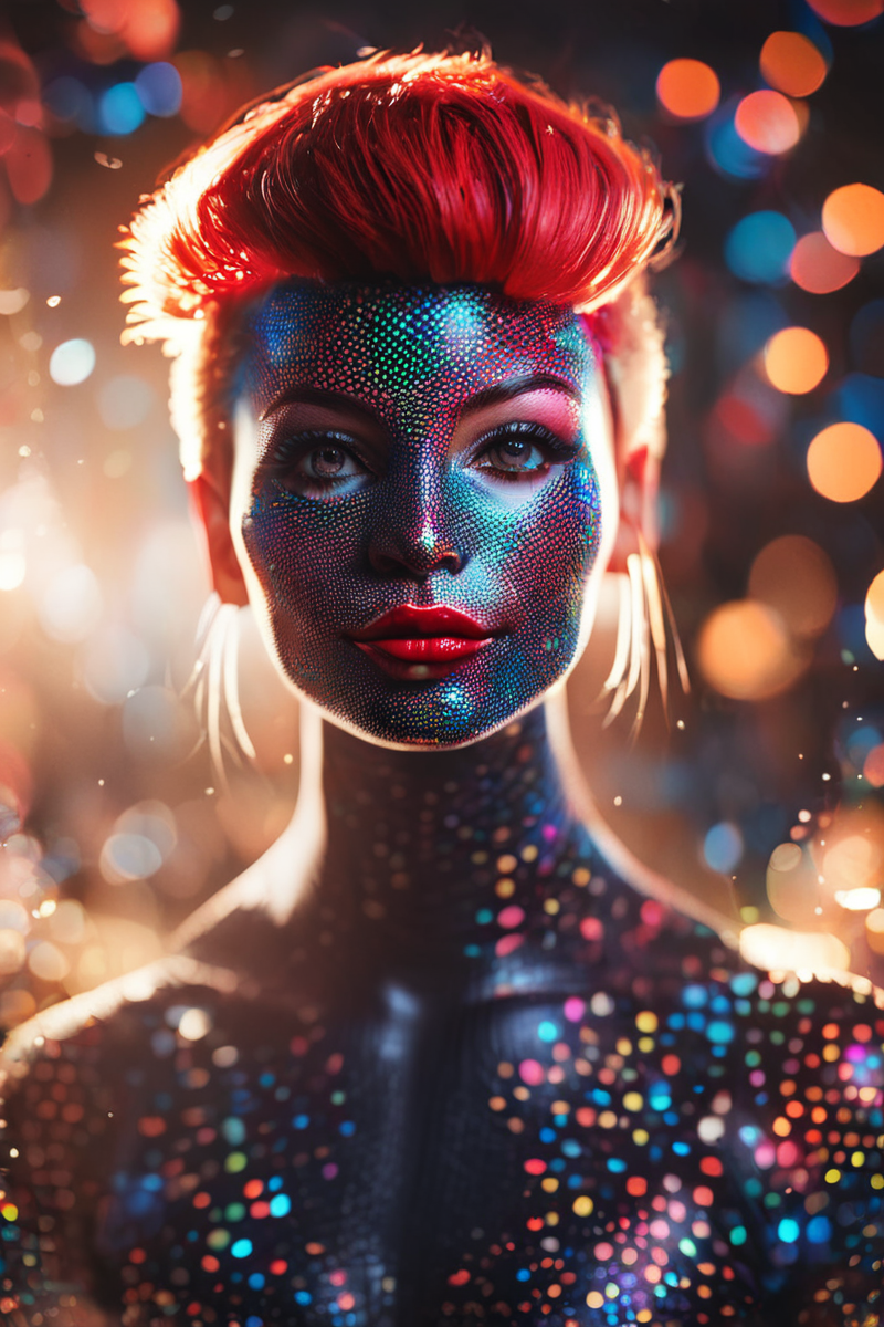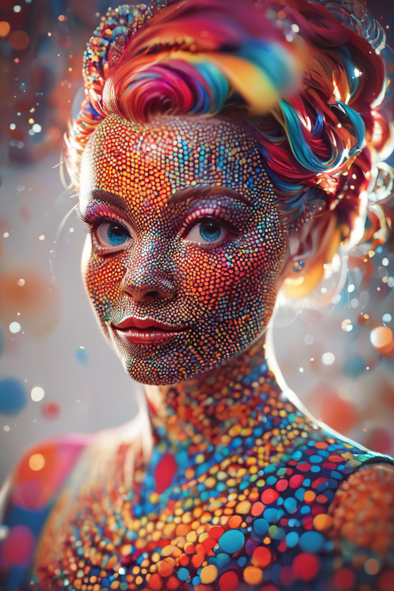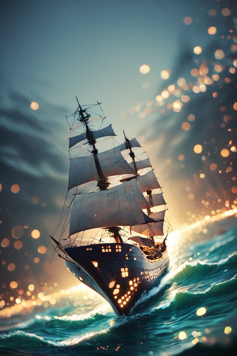 dotstyle, colorful, abstract, ship, ocean, waves, stormy sky, lightning,