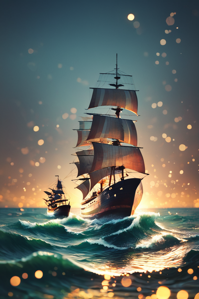 dotstyle, colorful, abstract, ship, ocean, waves,