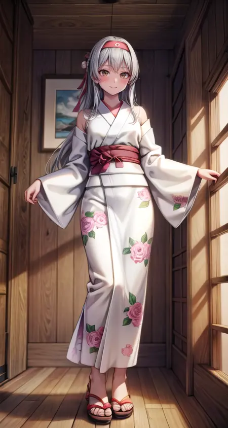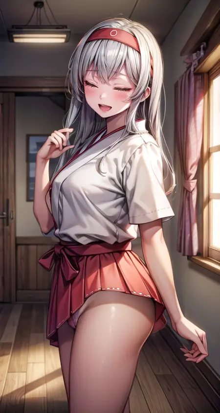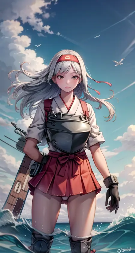 shoukaku_(kancolle )、ロングヘア、茶色の目、ヘアバンド、頭巾、白髪
