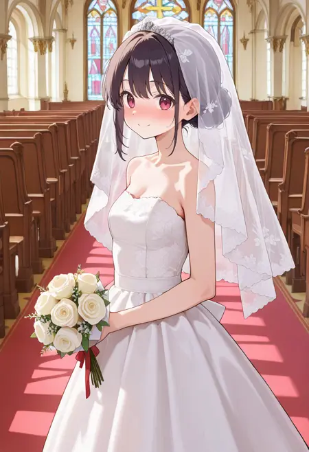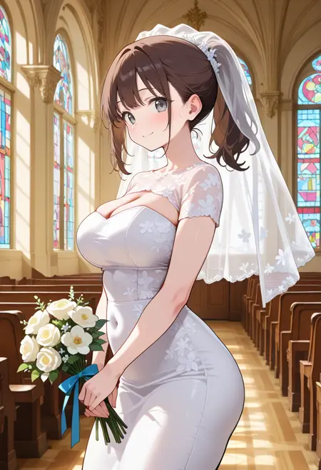 提示词 "wedding dress" 可在大多数基础模型中生成婚纱,但此LoRA有助于标准化典型婚纱的外观。