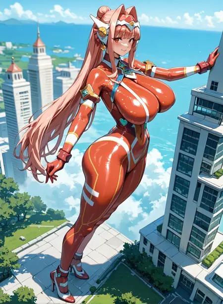 巨型:vivienne ootori、vivienne beast、红色紧身衣、贴身、头饰、红粉色头发、红色眼睛