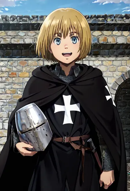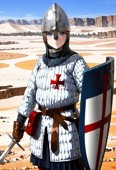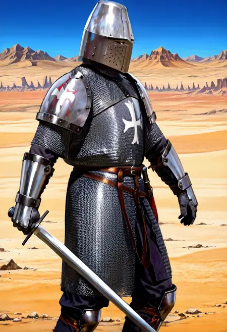 그레이트 헬름: 머리를 완전히 덮는 평평한 윗면을 가진 강철 원통형 헬멧으로, 환기 및 시야를 위한 매우 작은 구멍만 존재합니다.