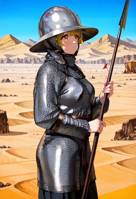 4.mail coif: a flexible hood of chain mail that extended to cover the throat, neck, and the top part of the shoulders. Can be used together with kettle helmet and Norman helmet when generating.