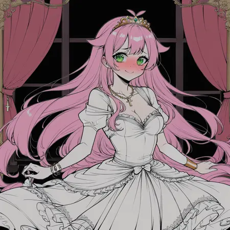 可惜她的裙子似乎总是画不出来,但你可以尝试使用“Celestium dress”。