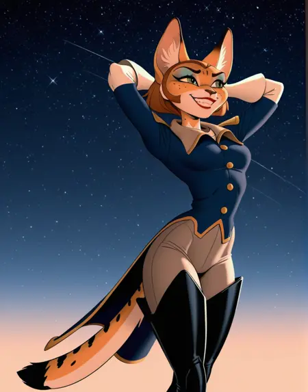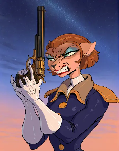 コアタグにはほとんど変更はありません。felid をタグとして追加できますが、時々彼女が猫っぽくなりすぎてしまうため、気に入らなければ削除しても安全です。私は主にフューリー関連のタグで学習していますが、彼女は従来の「アンソロ」キャラクターではないため、そのデータを学習に組み込むと、方向性がやや過剰にそれてしまいます。