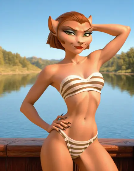 Not much has really changed with the core tags. You can add felid as a tag but sometimes it can make her a little TOO cat like so it's safe to remove if you don't like it. I train on mostly furry related tags but she's not a traditional "anthro" character so adding that data in training steers things a bit too far in that direction.