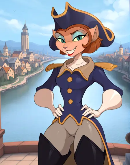 Changed up the tagging a little to be more detailed. Core tags are listed up in the Trigger Words section. The clothing bit you can kinda control how much of the body shows up in the image by including or excluding more detail. For instance if you just add blue coat and white gloves you'll mostly get portrait views. If you include the boots tags all the way down to high heels you'll get more full body views.