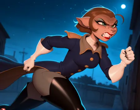 The only other real important tags are uniform, green eyes, and female. There's also a couple tags for her boots. Putting in just thigh boots works mostly for images from the thigh up. use the full high heeled thigh boots for a more full shot of her standing. Of course you can use other species and clothing tags if you want.