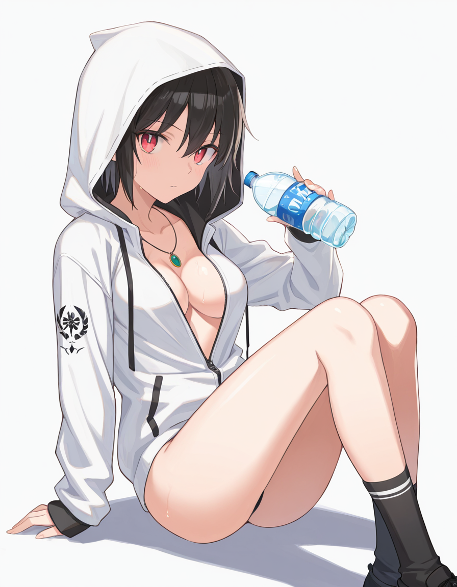 SummerOrtlinde, smr_one-piece_swimsuit, smr_beret, smr_hooded_jacket, smr_gloves, smr_thigh_strap, 手枪套, 拖鞋